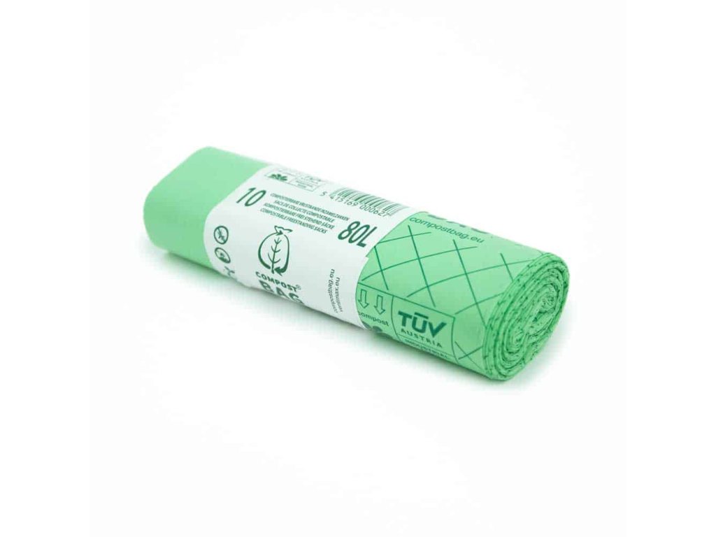 Kompostovatelné samostojící pytle s vázáním, 80l (velikost balení: 1 role)