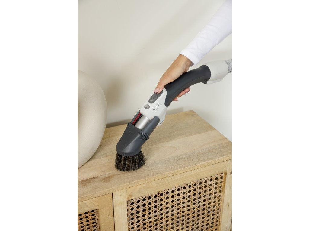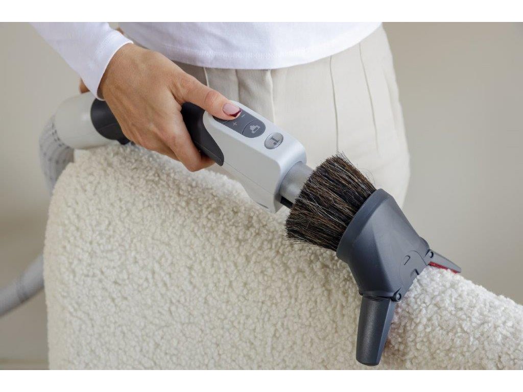 - Tato hubice je skutečný chameleon úklidu! Použijte ji s kartáčem pro _jemné utírání prachu_ z nábytku, nebo jen sací část pro _dokonalé vyčištění čalounění_. Potřebujete vysát záclony? Snadno snížíte sací výkon a ochráníte své jemné tkaniny. Díky praktickému držáku na rukojeti hadice ji budete mít vždy po ruce.